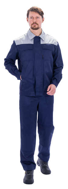 Костюм мужской ТЕХНИК 2 от механических воздействий и ОПЗ (куртка, полукомбинезон), темно-синий/серый